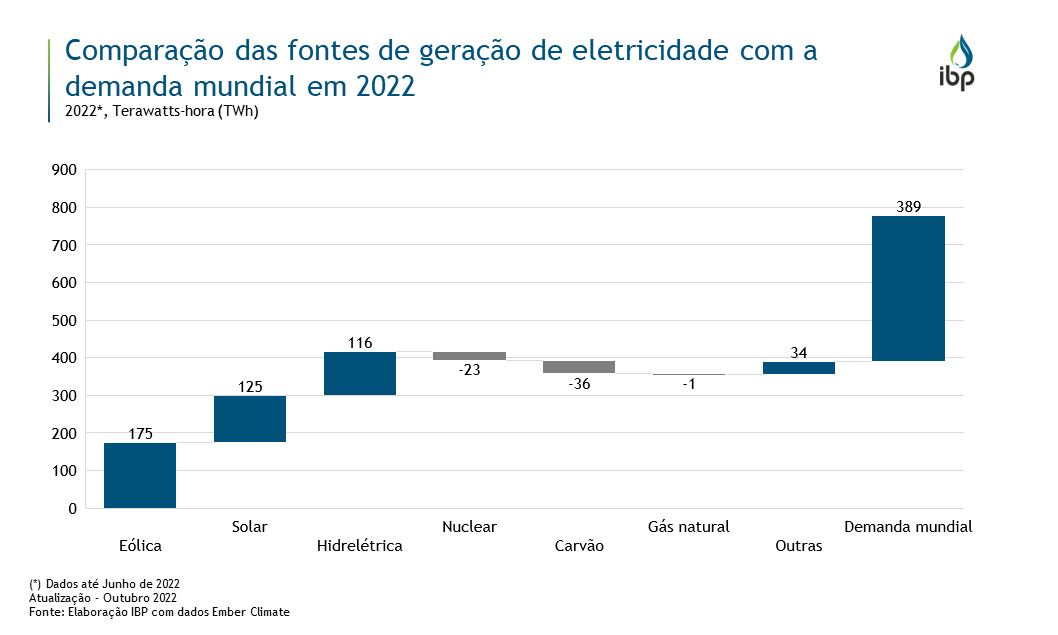 Comparação das fontes de geração de eletricidade com a demanda mundial em 2022