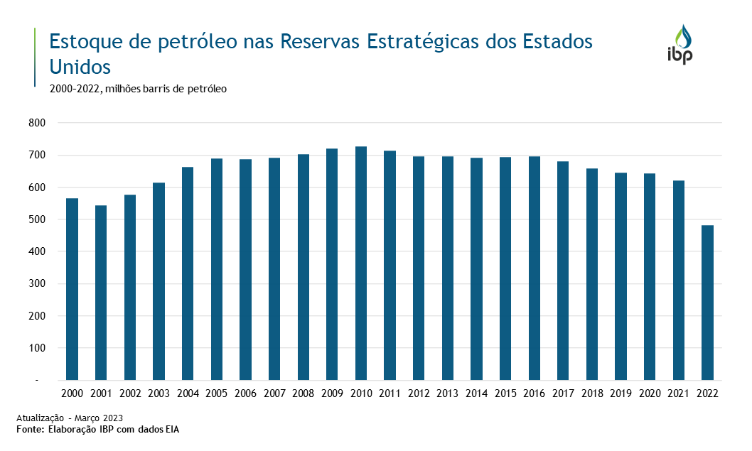 Com a crise energética aprofundada pelo conflito entre Rússia e Ucrânia, os Estados Unidos liberaram parte de sua SPR em função das restrições de oferta no mercado. Em 2022, a média anual da SPR atingiu o menor patamar dos últimos 20 anos – 482 milhões de barris de petróleo. Esse valor representa uma queda de aproximadamente 25% em relação à média de 2019, antes do impacto da pandemia do Covid-19 sobre os mercados globais. Além disso, em dezembro de 2022, o estoque de petróleo na SPR foi de cerca de 372 milhões de barris, o menor nível desde 1983.
