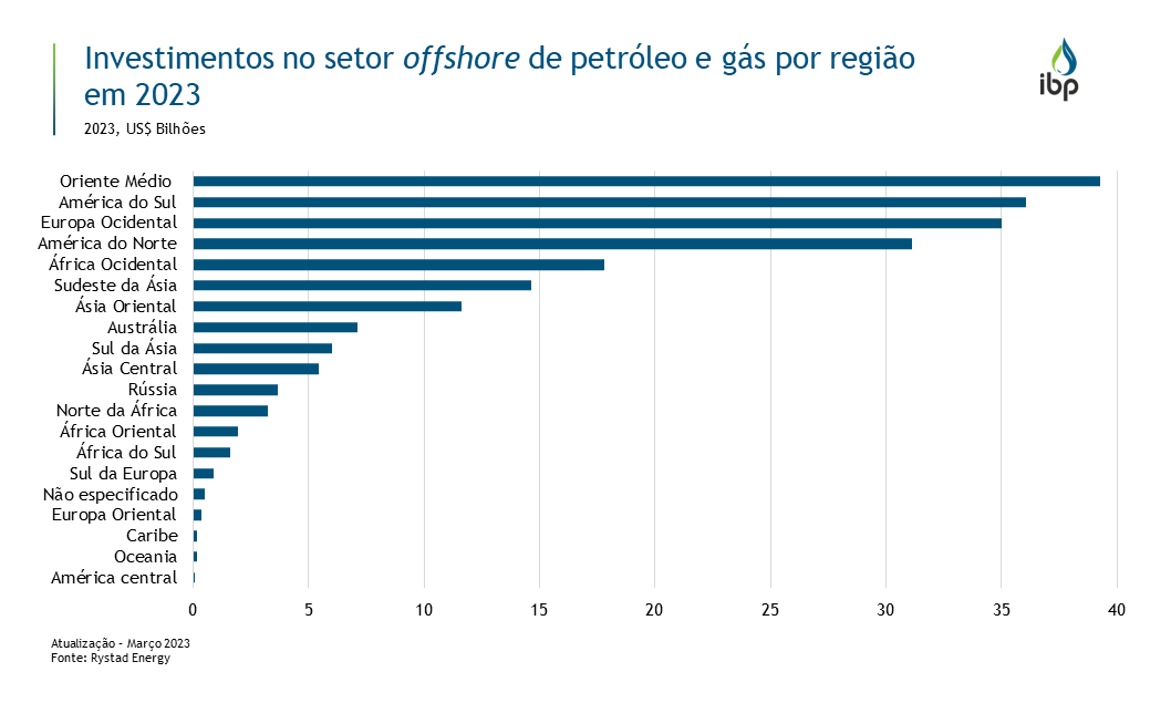 Investimentos no setor offshore de petróleo e gás por região em 2023