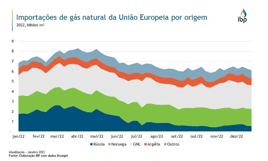 A guerra entre Rússia e Ucrânia e as posteriores sanções contra a Rússia geraram uma reviravolta nos mercados de gás natural, principalmente na União Europeia (UE) diante da sua dependência do gás russo. Após atingirem a máxima de 2022 no início de março, as importações de gás russo pela UE começaram a decair paulatinamente, chegando a cair cerca de 80% até o final do ano.