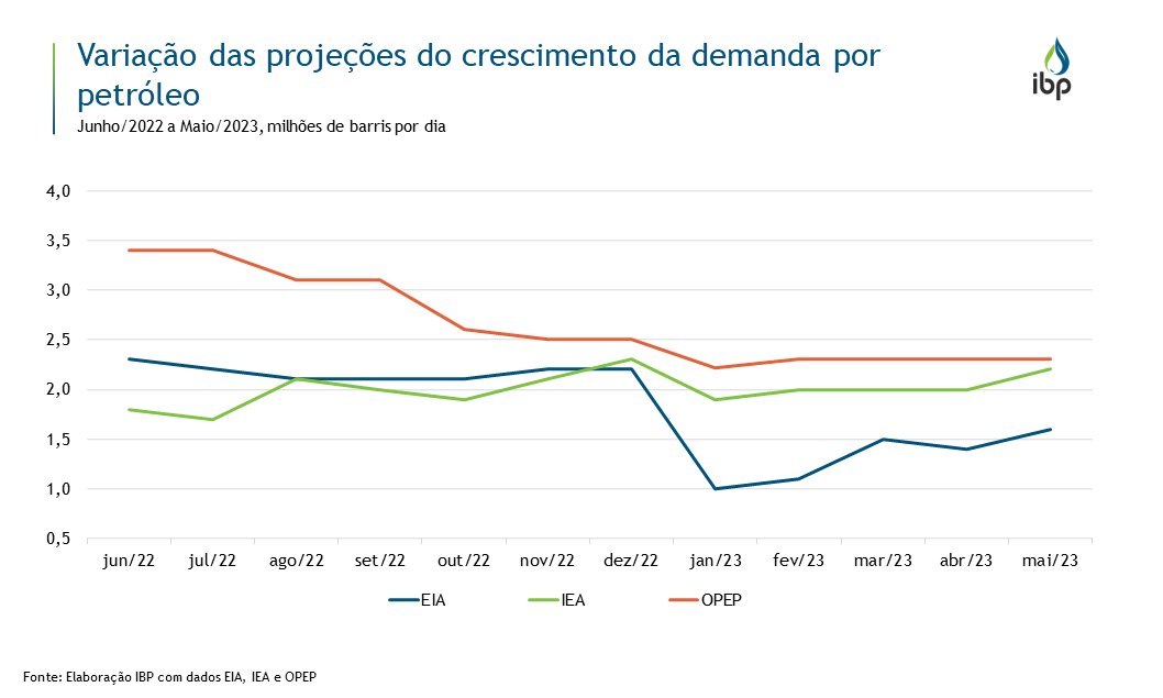 Mensalmente, três instituições – U.S. Energy Information Administration (EIA), Agência Internacional de Energia (IEA, na sigla em inglês) e a Organização dos Países Exportadores de Petróleo (OPEP) – divulgam relatórios com o panorama para o mercado de petróleo no curto prazo. Dentre as projeções, está a de crescimento da demanda global por petróleo, que por sua vez é sensível a diversos drivers que podem impactar positiva ou negativamente a sua direção.